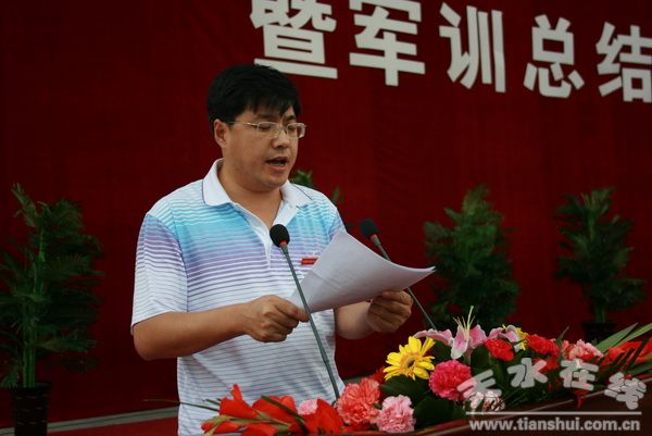 李宗義院長發(fā)表了重要講話。他首先向2010級新同學(xué)表示了祝賀!向辛勤耕耘的老師們表示了誠摯的感謝!向承擔(dān)新生軍訓(xùn)任務(wù)的天水陸軍預(yù)備役旅及全體承訓(xùn)官兵的辛勤工作致以崇高的敬意!他講到,學(xué)院將會繼續(xù)貫徹“以就業(yè)為導(dǎo)向、以服務(wù)為宗旨”的職教方針,堅持“以就業(yè)為導(dǎo)向、以服務(wù)為宗旨”的辦學(xué)宗旨。面向市場、立足甘肅、服務(wù)全國裝備制造業(yè)培養(yǎng)人才,努力營造學(xué)院文化,培育學(xué)院特色、提高教學(xué)質(zhì)量。發(fā)揚“艱苦奮斗、不驕不躁、勇于創(chuàng)新、敢為人先”的學(xué)院精神,繼續(xù)實施“以項目為支撐的模塊化教學(xué)改革”。我們的目標(biāo)是把學(xué)院建設(shè)成為“特色鮮明、省內(nèi)一流”的高職院校。