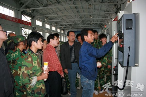 調(diào)研組觀看學(xué)生操作數(shù)控加工中心