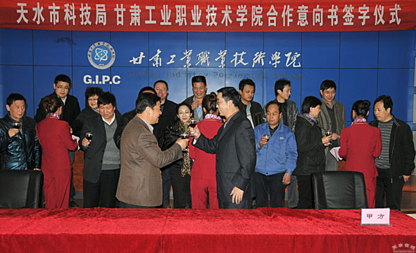 天水市科技局黨組書記、局長楊秀峰作了重要講話。楊秀峰指出,今天,我們在這里隆重舉行天水市科技局與甘肅工業(yè)職業(yè)技術(shù)學(xué)院科技合作簽約儀式,這是我市科技工作中的一件大事,也是一件喜事。同時(shí)也標(biāo)志著天水市科技局與甘肅工業(yè)職業(yè)技術(shù)學(xué)院的科技合作將更加緊密,也更深入。校地校企合作是全面貫徹落實(shí)國務(wù)院《關(guān)中一天水經(jīng)濟(jì)區(qū)發(fā)展規(guī)劃》中建立“統(tǒng)籌科技資源改革示范基地”的重大舉措,也是加快建立以企業(yè)為主體,以市場為導(dǎo)向,以大專院校、科研院所為支撐,產(chǎn)學(xué)研相結(jié)合的創(chuàng)新體系建設(shè)的根本要求。我們與甘肅工業(yè)職業(yè)技術(shù)學(xué)院簽約,將本著“優(yōu)勢互補(bǔ),真誠合作,互惠互利,共同發(fā)展”的原則,市科技局將在科技計(jì)劃項(xiàng)目立項(xiàng)、工程技術(shù)研究中心和重點(diǎn)實(shí)驗(yàn)室建設(shè)、院企科技合作等方面對學(xué)院給予重點(diǎn)扶持。同時(shí)也衷心希望甘肅工業(yè)職業(yè)技術(shù)學(xué)院發(fā)揮科研基礎(chǔ)條件、人才智力優(yōu)勢,加快院企合作步伐,搭建科技合作與交流的平臺,形成范圍更廣的產(chǎn)學(xué)研一體化的科技合作機(jī)制,為天水經(jīng)濟(jì)社會發(fā)展做出新的更大的貢獻(xiàn)。