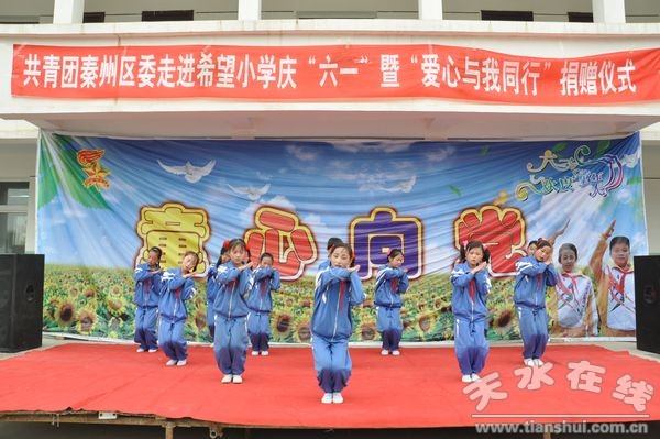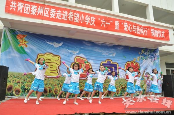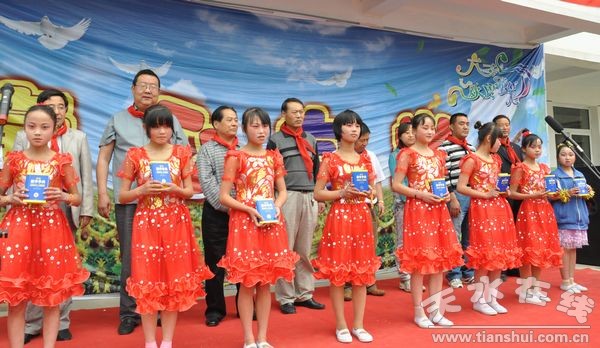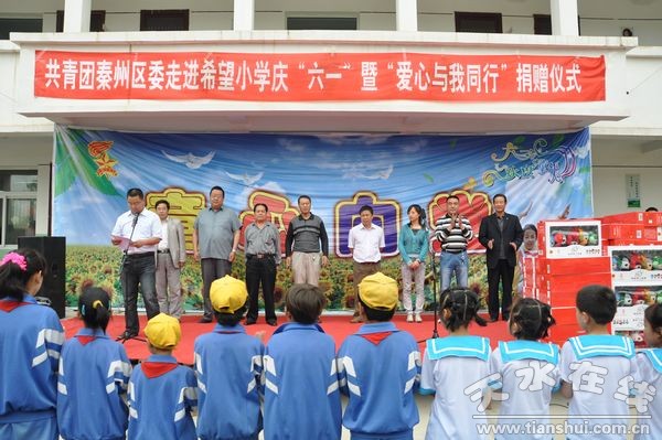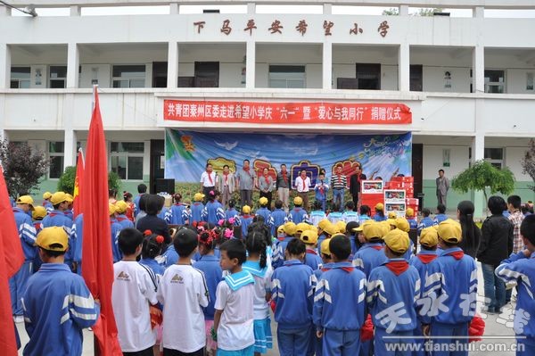 (秦州區(qū)外宣辦 辛志鋒)6月1日上午,秦州區(qū)關(guān)工委、團(tuán)區(qū)委來到華歧鄉(xiāng)下馬村平安希望小學(xué),與學(xué)校師生共同慶!傲弧眹H兒童節(jié),并為他們送去的節(jié)日的祝福和“平安希望獎(jiǎng)學(xué)金”、教學(xué)用品及節(jié)日禮品福娃。