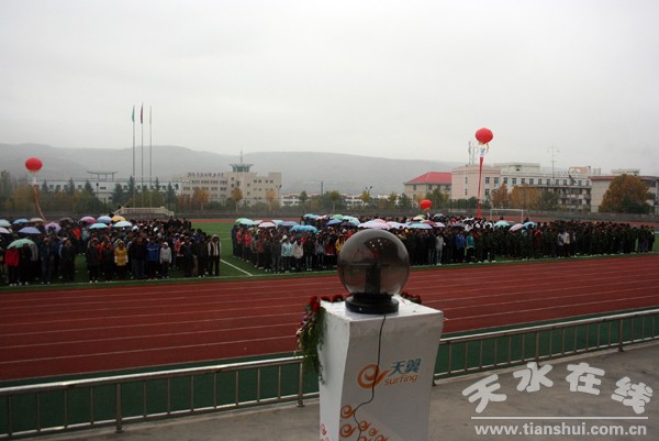 10月25日下午,甘肅機(jī)電職業(yè)技術(shù)學(xué)院“校園翼機(jī)通”啟動(dòng)儀式在學(xué)院體育場舉行。天水市工業(yè)和信息化委員會(huì)主任王祥林,中國電信天水分公司總經(jīng)理孟憲福,黨組書記、副總經(jīng)理蔣宜飛,副總經(jīng)理田龍生、馬愛民、牛鵬科,學(xué)院黨委書記、院長李宗義,黨委副書記、副院長王芳弟,黨委委員、副院長堅(jiān)葆林、李自勇、毛文輝、霍五堂、雷迅出席啟動(dòng)儀式,中國電信天水分公司相關(guān)部門負(fù)責(zé)人、政企客戶部全體員工,學(xué)院全體師生2000多人參加了啟動(dòng)儀式。啟動(dòng)儀式由學(xué)院黨委委員、副院長霍五堂主持。
