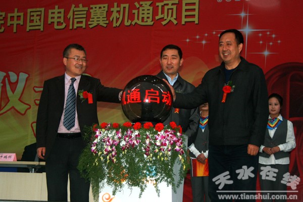 啟動(dòng)儀式上,由天水市工信委主任王祥林,院黨委書記、院長李宗義及中國電信天水分公司總經(jīng)理孟憲福共同啟動(dòng)了甘肅機(jī)電職業(yè)技術(shù)學(xué)院“校園翼機(jī)通”。