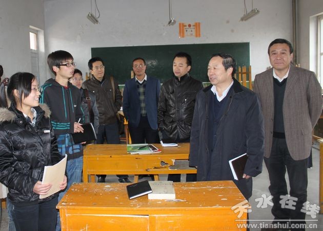 甘暉一行先后深入市十中、麥積區(qū)新陽中學,清水縣三中、六中進行了檢查。通過召開座談會等方式,認真聽取實習學校負責人、陜師大帶隊教師、實習學校指導教師和實習生關(guān)于實習工作的情況匯報,詳細詢問本校實習生的學習生活情況,實地察看實習生宿舍,并深入中學課堂檢查實習學生的教學工作情況。