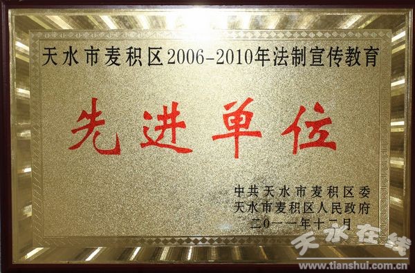 在12月23日召開的麥積區(qū)第七次法制宣傳教育工作會議上,甘肅林業(yè)職業(yè)技術(shù)學院被評為2006——2010年“五五”普法先進單位。