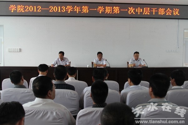 8月26日,甘肅林業(yè)職業(yè)技術(shù)學(xué)院召開2012-2013學(xué)年第一學(xué)期第一次中層干部會議,會議由學(xué)院黨委書記朱勇虎主持。