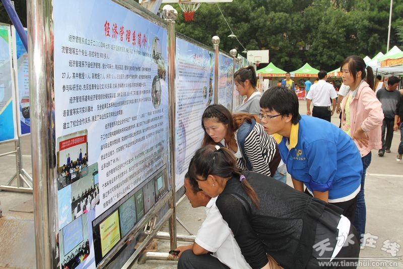 為了讓新同學(xué)更好的了解學(xué)院,激勵新生勤奮學(xué)習(xí),黨委宣傳部制作了圖文并茂的宣傳展板,從領(lǐng)導(dǎo)關(guān)懷、教學(xué)科研、招生就業(yè)、學(xué)院榮譽、校園文化、校園風貌六個板塊充分展示了學(xué)院的發(fā)展歷程和近年來所取得的成績。同時,各系部為了讓新生和家長更好地了解系部和專業(yè)也制作了精彩的宣傳展板,展板吸引了廣大新生和家長駐足觀看。
