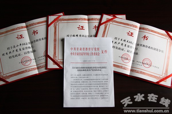 秦安縣五中黨支部、甘谷縣教體局黨委、甘谷縣大像山鎮(zhèn)柳湖小學(xué)黨支部、武山縣城關(guān)鎮(zhèn)第三小學(xué)黨支部、清水縣秦亭中學(xué)黨支部、天水市電教館黨支部被市委表彰為“全市創(chuàng)先爭優(yōu)先進(jìn)基層黨組織”;秦州區(qū)新華門小學(xué)景黎霞、秦安縣一中王守田、甘谷縣柳汁小學(xué)程林君、武山縣一中楊興海、天水市二幼李曉霞被表彰為“全市創(chuàng)先爭優(yōu)優(yōu)秀共產(chǎn)黨員”;清水縣六中支建平被表彰為“全市創(chuàng)先爭優(yōu)優(yōu)秀黨務(wù)工作者”。