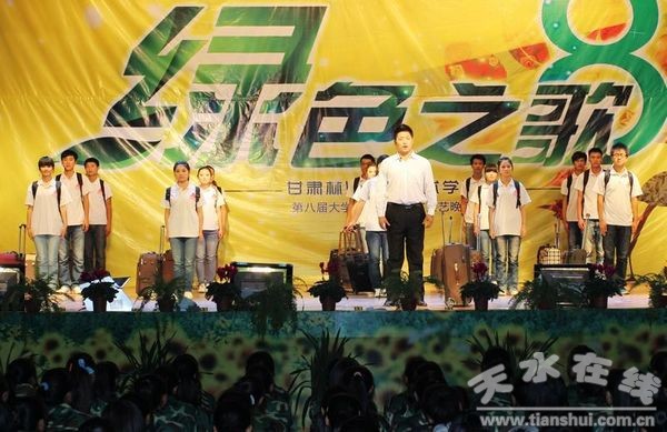 綠色華章承載著甘林人的夢想,雄壯的歌聲詮釋著輝煌。10月22日晚,全院師生期待已久的甘肅林院2012年文化藝術(shù)節(jié)“綠色之歌”文藝晚會在學(xué)院禮堂隆重舉行。正在該院開展人才培養(yǎng)工作評估的專家及學(xué)院黨政領(lǐng)導(dǎo)、1000多名師生一同觀看了晚會。