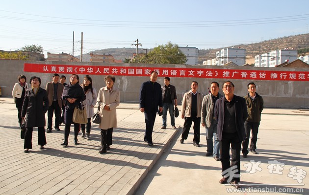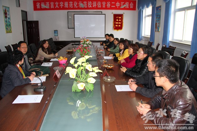 10月23日至24日,省語委、省教育廳抽調(diào)專家組成評估團,對天水市第七中學(xué)、甘谷縣南街小學(xué)、甘谷縣第二中學(xué)等3所學(xué)校進行了“省級語言文字規(guī)范化示范!痹u估驗收。評估組通過聽取匯報、實地察看環(huán)境、查閱檔案資料、抽查教案作業(yè)、隨機聽課、召開師生座談會等方式對3所學(xué)校語言文字工作進行了全面檢查。