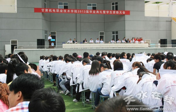 5月31日下午,甘肅機(jī)電職業(yè)技術(shù)學(xué)院2013屆畢業(yè)典禮暨學(xué)生資助表彰大會(huì)在新田徑場隆重舉行。院長張炯出席并致歡送詞,黨委委員、副院長霍五堂主持會(huì)議。學(xué)院相關(guān)部門負(fù)責(zé)人、全院師生4000余人參加了大會(huì)。