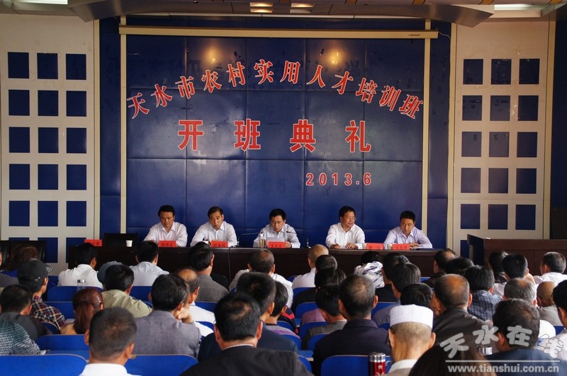 6月4日,天水農業(yè)學校隆重舉行2013年全市農村實用人才培訓班開班典禮。天水市委常委、組織部部長王光慶,人才科科長王見學,清水縣委常委、組織部部長剡海明,天水農業(yè)學校校長李強、副校長周偉東,全市五縣兩區(qū)林果種植、畜牧養(yǎng)殖班參訓學員共100多人參加大會。會議由周偉東同志主持。