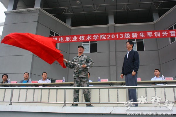 在莊嚴而隆重的升旗儀式后,團委書記王曉東宣布了本次軍訓的機構設置,張德龍副院長宣讀《甘肅機電職業(yè)技術學院軍訓優(yōu)秀連隊、優(yōu)秀學員評選辦法》,2013級新生軍訓學員徐立鑫代表全體參訓新生發(fā)言。