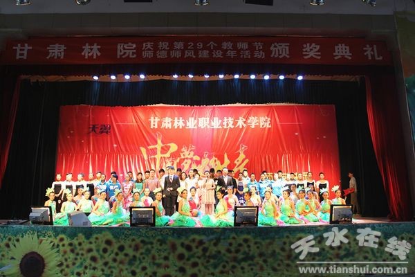 9月10日,甘肅林職學(xué)院隆重召開(kāi)慶祝第29個(gè)教師節(jié)暨表彰大會(huì)。學(xué)院領(lǐng)導(dǎo)朱勇虎、高云峰、姚德生、鞏文、虎保成、冉福祥、陳國(guó)保、王存孝出席,全體教職工和2013級(jí)新生代表參加。
