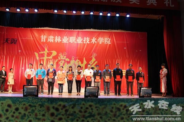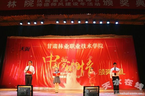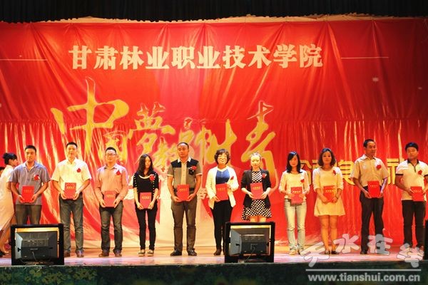在頒獎(jiǎng)典禮上,新入職的47名青年教師在國(guó)旗下進(jìn)行了莊嚴(yán)的入職宣誓。學(xué)院領(lǐng)導(dǎo)分別為獲得先進(jìn)集體稱(chēng)號(hào)的園林工程系、辦公室、人事處等8個(gè)處級(jí)先進(jìn)集體代表,林業(yè)技術(shù)教研室、工程測(cè)量技術(shù)教研室等4個(gè)科級(jí)先進(jìn)集體代表,學(xué)院師德標(biāo)兵李鴻杰,師德先進(jìn)個(gè)人張彥林等9人頒獎(jiǎng),并為榮獲甘肅省優(yōu)秀輔導(dǎo)員提名獎(jiǎng)的師衛(wèi)軍,甘肅省優(yōu)秀輔導(dǎo)員入圍獎(jiǎng)的汪雙成及獲得2012-2013學(xué)年度的50名優(yōu)秀教師、優(yōu)秀教育工作者、優(yōu)秀輔導(dǎo)員頒獎(jiǎng)。