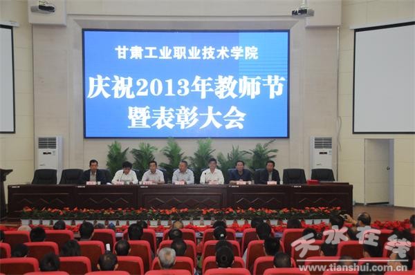 9月10日下午,甘肅工業(yè)職業(yè)技術(shù)學(xué)院在圖書館5樓會(huì)議廳召開慶祝2013年教師節(jié)暨表彰大會(huì),校領(lǐng)導(dǎo)王志年、曹愛明、郭建忠、魯挑建、徐凱、楊華、李玉生等出席大會(huì),全體教職員工及部分離退休老同志參加了大會(huì)。大會(huì)由甘肅工業(yè)職業(yè)技術(shù)學(xué)院黨委副書記郭建忠主持。