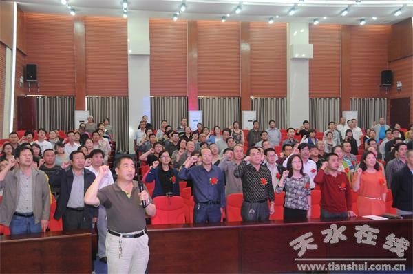 大會(huì)舉行了簡短而莊嚴(yán)的教師宣誓儀式。全體教師起立,奏唱國歌,并面對(duì)國旗,莊嚴(yán)宣誓!拔以缸鲆幻鈽s的人民教師,面對(duì)國旗,莊嚴(yán)宣誓:遵守國家法律,貫徹黨的教育方針,忠誠人民教育事業(yè),履行教師神圣職責(zé)。立德樹人,為人師表,爭當(dāng)教書育人楷模;關(guān)愛學(xué)生,嚴(yán)謹(jǐn)治學(xué),促進(jìn)學(xué)生全面發(fā)展;追求真理,崇尚科學(xué),不斷提升專業(yè)能力;恪盡職守,勇于創(chuàng)新,樂做終身學(xué)習(xí)典范;珍惜生命,熱愛生活,團(tuán)結(jié)協(xié)作,甘于奉獻(xiàn),為教育事業(yè)貢獻(xiàn)畢生精力!”鏗鏘有力的誓言,充分表達(dá)了我校師生立德樹人、為人師表、爭當(dāng)教書育人楷模的品質(zhì)和團(tuán)結(jié)協(xié)作、勇于創(chuàng)新、為教育事業(yè)貢獻(xiàn)畢生精力的奉獻(xiàn)精神。