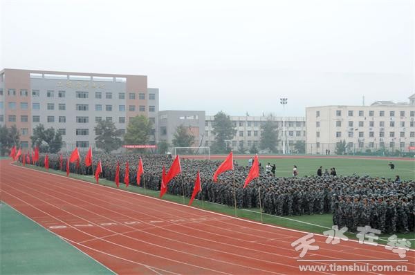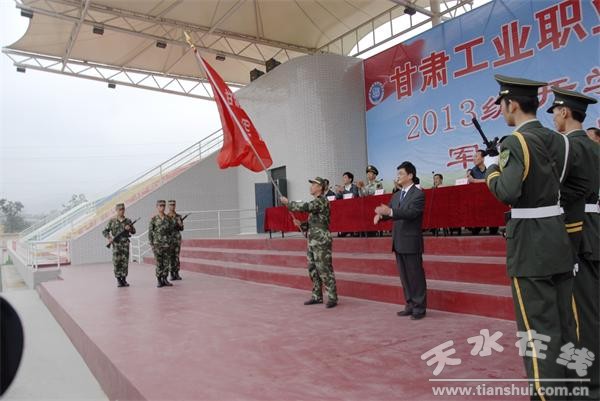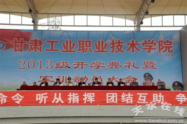 9月9日上午9點,甘肅工業(yè)職業(yè)技術學院2013級新生開學典禮暨軍訓動員大會在新田徑場隆重召開。學校領導曹愛明、郭建忠、魯挑建、徐凱、楊華、李玉生,武警天水支隊副支隊長馬文軍出席典禮,副校長魯挑建主持大會。