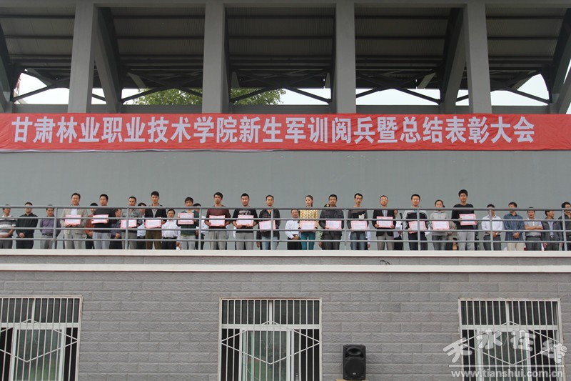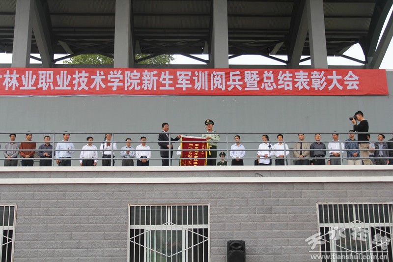 9 月17日上午10時(shí),甘肅林職學(xué)院隆重召開2013級(jí)新生軍訓(xùn)匯報(bào)演出暨表彰大會(huì),學(xué)院領(lǐng)導(dǎo)朱勇虎、蘆維忠、高云峰、姚德生、鞏文、虎保成、冉福祥、武警天水支隊(duì)副參謀長付小剛、武警天水支隊(duì)中隊(duì)長馬永紅、學(xué)院各部門負(fù)責(zé)人及2013級(jí)全體新生參加。大會(huì)由副院長虎保成主持。