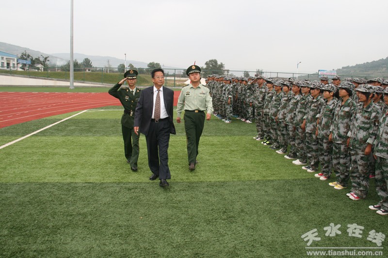 院長蘆維忠做了熱情洋溢的講話。他代表學(xué)院對(duì)承擔(dān)此次軍訓(xùn)工作的武警天水支隊(duì)的領(lǐng)導(dǎo)和教官表示了衷心的感謝,并向積極參加軍訓(xùn)并順利完成大學(xué)第一課的全體新同學(xué)致以親切的問候和熱烈的祝賀!他還指出,這次軍訓(xùn)工作在承訓(xùn)部隊(duì)與學(xué)院精心組織、科學(xué)安排,各部門通力合作,細(xì)致工作,各系帶隊(duì)老師認(rèn)真負(fù)責(zé),盡職盡責(zé),使軍訓(xùn)達(dá)到了預(yù)期目標(biāo)、取得了圓滿成功。