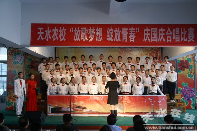 在國慶節(jié)來臨之際,為了進一步弘揚愛國主義精神,增強全體同學(xué)的民族自豪感,營造熱烈喜慶的節(jié)日氛圍。在學(xué)生科和校團委的組織下,9月27日下午在學(xué)生活動中心舉行了天水農(nóng)!胺鸥鑹粝 綻放青春”慶國慶合唱比賽。參加合唱比賽的學(xué)校領(lǐng)導(dǎo)有校長李強,副校長周偉東、文建水,紀(jì)檢書記謝鳴。