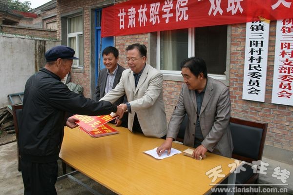 10月9日,甘肅林業(yè)職業(yè)技術(shù)學院院長蘆維忠,黨委副書記、紀委書記高云峰帶領(lǐng)黨委辦公室、組織部、宣傳部負責人分頭前往該院“雙聯(lián)”聯(lián)系點三陽、澗溝、周半三個村為今年這些村參加高考并考入本科、大專院校的考生發(fā)放“雙聯(lián)”獎學金。