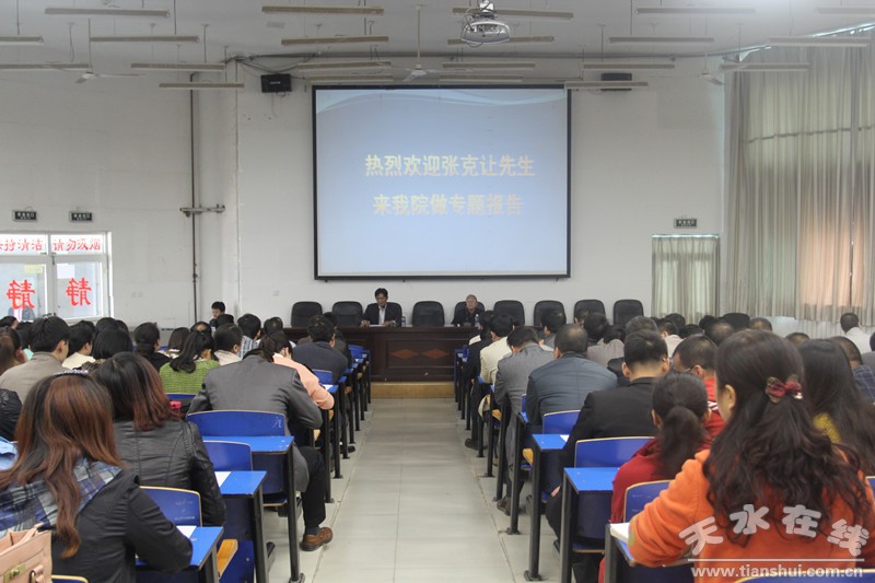 為增強(qiáng)全院教師教書育人的榮譽(yù)感和責(zé)任感,進(jìn)一步推動師德師風(fēng)建設(shè)活動,強(qiáng)化學(xué)院道德講堂建設(shè),10月18日下午,甘肅林業(yè)職業(yè)技術(shù)學(xué)院邀請原甘肅教育學(xué)院副院長張克讓先生來該院為全體專兼職教師做了題為:“教學(xué)育人十二字訣”的專題報告。副院長虎保成現(xiàn)場聆聽了報告。