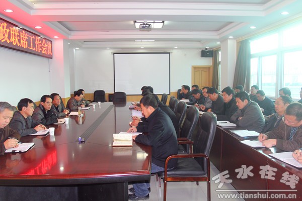 11月25日上午,甘肅林職學(xué)院召開了2013-2014學(xué)年度第六次黨政聯(lián)席會(huì)議,學(xué)院領(lǐng)導(dǎo)朱勇虎、姚德生、鞏文、虎保成、程國(guó)保、王存孝及各部門黨政正職參加了會(huì)議。會(huì)議由黨委書記朱勇虎主持。