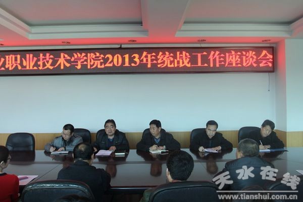 11月30日,甘肅林業(yè)職業(yè)技術(shù)學(xué)院召開(kāi)了2013年統(tǒng)戰(zhàn)工作座談會(huì)。學(xué)院各民主黨派及知識(shí)分子聯(lián)誼會(huì)全體人員參加了會(huì)議,會(huì)議由統(tǒng)戰(zhàn)部部長(zhǎng)郭懷林主持。