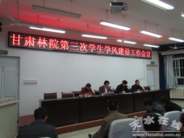 12月5日晚,甘肅林職學院召開第三次學生學風建設(shè)工作會議,副院長冉福祥、學生處負責人、各系黨總支副書記出席,各系學生干事、輔導員組長、輔導員、班主任共70余人參加了會議,會議由學生處處長藺守臣主持。