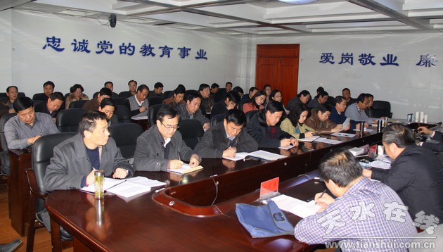 2月21日下午,天水市教育局召開黨的群眾路線教育實(shí)踐活動(dòng)動(dòng)員大會(huì)。市教育局黨委書記、局長(zhǎng)蘇定武就做好黨的群眾路線教育實(shí)踐活動(dòng)做了動(dòng)員講話,市委第十督導(dǎo)組組長(zhǎng)張拴科出席會(huì)議并對(duì)活動(dòng)開展提出具體要求,會(huì)議由市教育局黨委委員、副局長(zhǎng)伏平主持。
