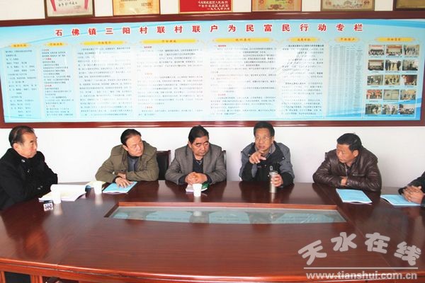 朱書記一行在三陽村與村兩委班子就該村新農(nóng)村建設、山區(qū)土地流轉(zhuǎn)、村內(nèi)綠化、亮化工作進行了廣泛的交流與探討。他表示,三陽村裴家溝自然村整村搬遷工作是三陽村新農(nóng)村建設的首要任務,目前項目已批轉(zhuǎn)到天水市規(guī)劃局,學院將協(xié)同鎮(zhèn)村干部,積極與規(guī)劃局聯(lián)系,爭取早日落實。山區(qū)土地流轉(zhuǎn)工作村兩委要積極主動做好群眾工作,爭取早日招商開建,確保農(nóng)民的土地收益。學院今年將重點支持三陽村綠化、亮化、美化工作,以改變整體的村容村貌。