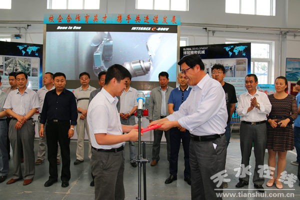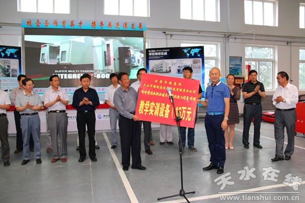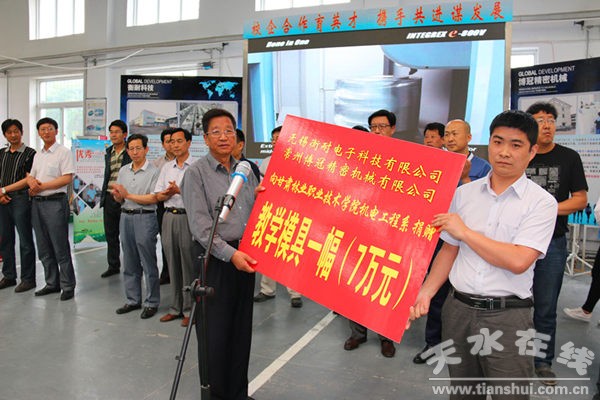 6月13日,甘肅林職學(xué)院舉行天水華圓科技公司、無錫衡耐電子科技有限公司、常州博冠精密機(jī)械有限公司為該院機(jī)電工程系捐贈教學(xué)儀器設(shè)備儀式。學(xué)院黨委書記朱勇虎、院長陳逸平、黨委副書記、紀(jì)委書記高云峰、副院長姚德生、鞏文、虎保成、冉福祥,天水華圓科技公司董事長李晟、總經(jīng)理馬德智、辦公室主任劉天生,無錫衡耐電子科技有限公司、常州博冠精密機(jī)械有限公司董事長李小龍、工程師陳勇出席捐贈儀式。