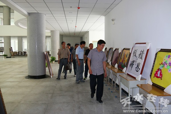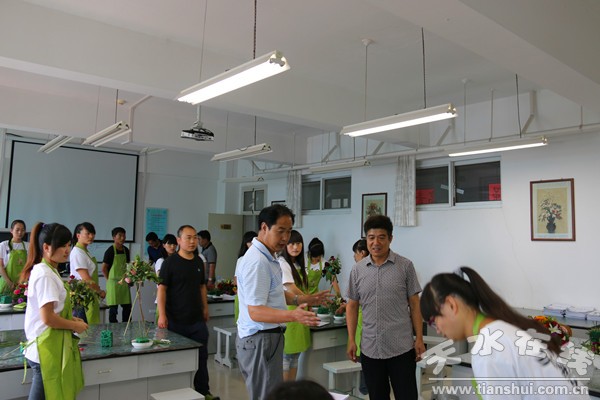 郭俊煒一行在張彥林等陪同下參觀了園林工程系實訓(xùn)中心、新圖書館學(xué)生手工作品展覽會、實訓(xùn)基地和小游園。在參觀過程中,郭俊煒一行詳細(xì)詢問了該系的教學(xué)發(fā)展?fàn)顩r,了解了該系學(xué)生插畫藝術(shù)的動手操作能力并與同學(xué)們進(jìn)行了交流。