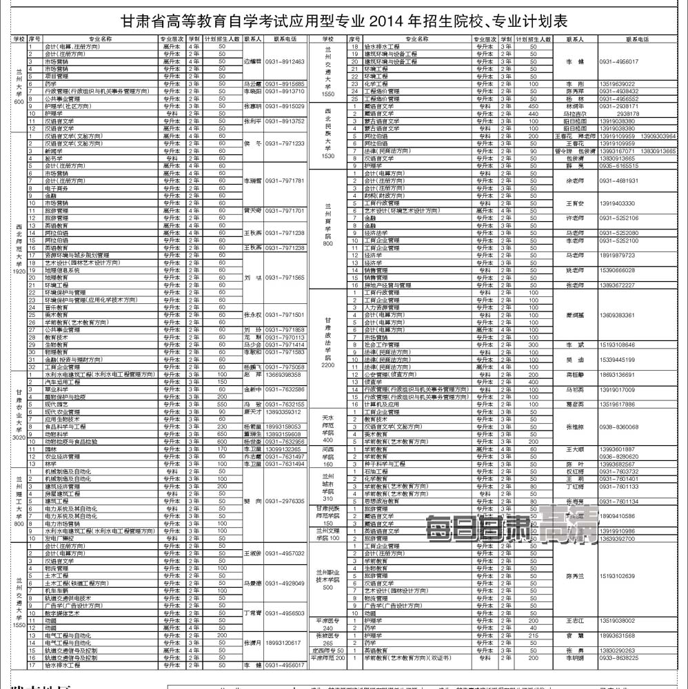 甘肅省高等教育自學(xué)考試應(yīng)用型專(zhuān)業(yè)2014年招生簡(jiǎn)章