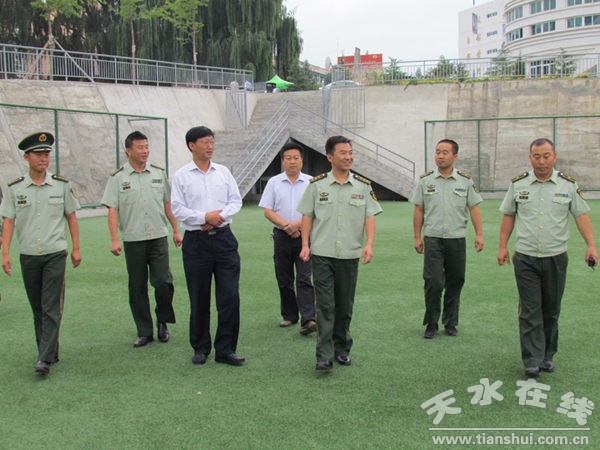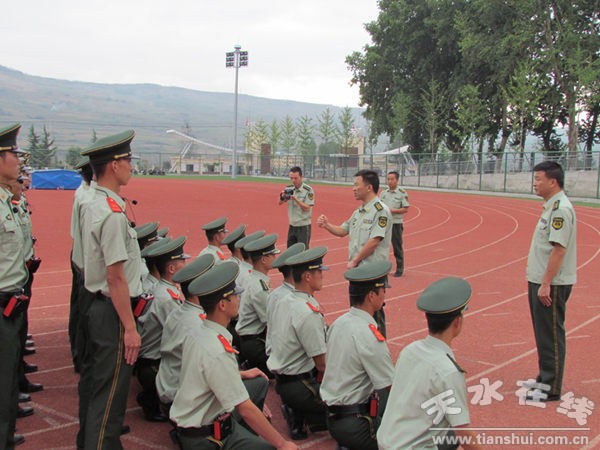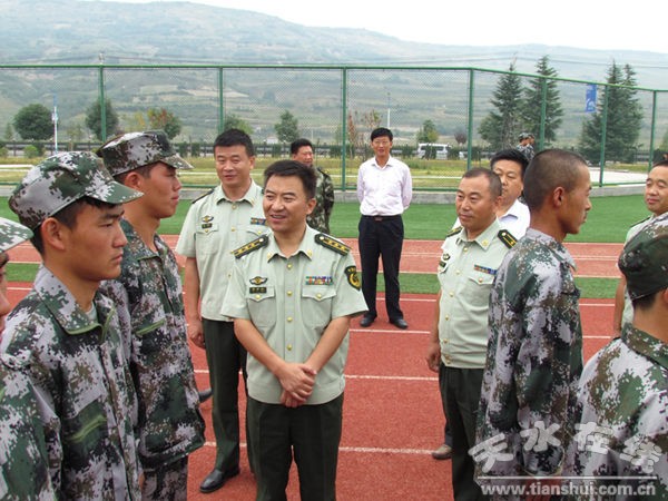 學(xué)院副院長冉福祥、學(xué)生處處長藺守臣陪同承訓(xùn)部隊首長一行查看了新生軍訓(xùn)情況。胡開鋒表示,此次軍訓(xùn),在部隊任務(wù)十分繁重,力量緊張的情況下開展,武警隴南市森林支隊領(lǐng)導(dǎo)十分重視,天水大隊精心組織,選拔了32名精干教官來校執(zhí)行學(xué)生軍訓(xùn)任務(wù),部隊有信心、也有決心圓滿完成此次軍訓(xùn)任務(wù),希望院領(lǐng)導(dǎo)放心。副院長冉福祥代表學(xué)院對部隊各級首長對此次軍訓(xùn)任務(wù)的高度重視表示衷心的感謝,承訓(xùn)部隊的官兵在軍訓(xùn)中,管理嚴格,紀(jì)律嚴明,軍容嚴整,展現(xiàn)了部隊的優(yōu)良傳統(tǒng)和作風(fēng),對我校的新生起到了很好的模范帶頭作用。同時,冉福祥表示,新生軍訓(xùn)作為大學(xué)生入學(xué)的第一堂課,對大學(xué)生的成長成才有著重要的意義,為了加強對2014級新生軍訓(xùn)工作的組織領(lǐng)導(dǎo),學(xué)院專門成立了由他擔(dān)任組長、學(xué)生處處長藺守臣擔(dān)任副組長、各系主任組成的軍訓(xùn)工作領(lǐng)導(dǎo)小組,希望通過相互的良好配合,圓滿順利完成學(xué)院的軍訓(xùn)任務(wù),進一步深化和落實學(xué)院與武警隴南市森林支隊天水大隊警民共建協(xié)議,促進雙方合作發(fā)展。