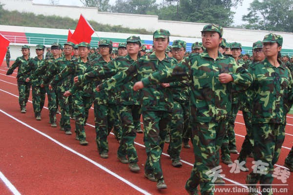 ·甘肅機電職業(yè)技術學院2014級新生開展軍訓拉練活動