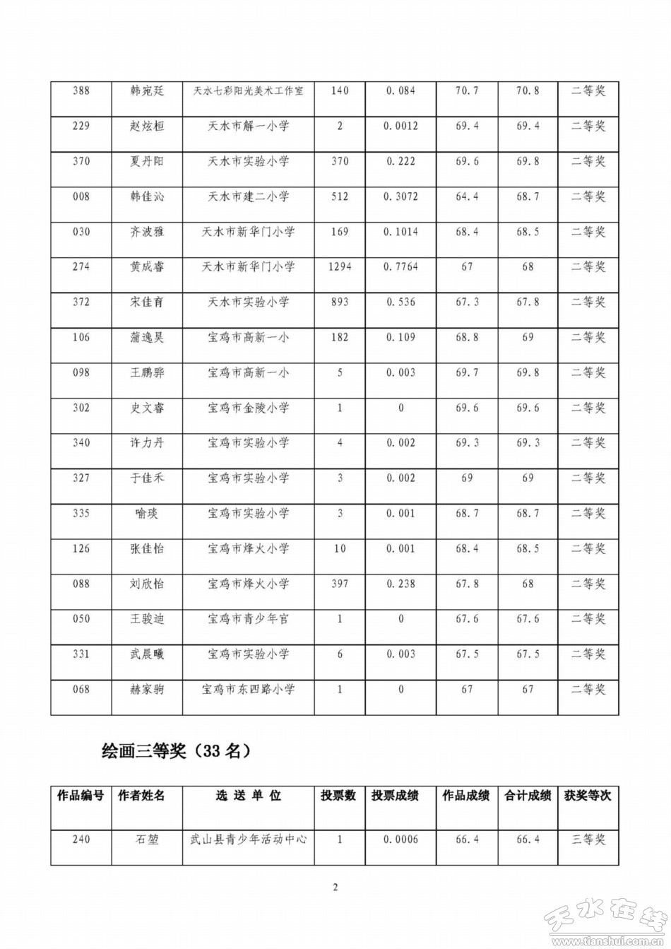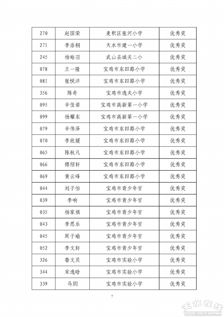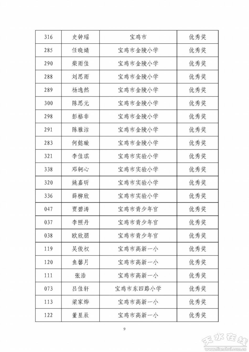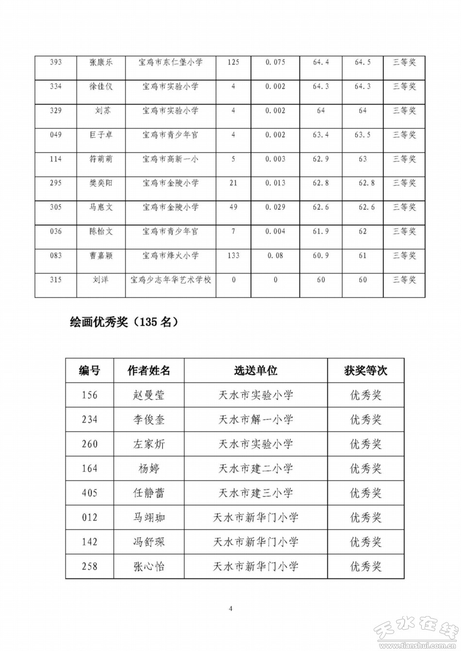 天水寶雞少年兒童書畫作品網(wǎng)絡(luò)聯(lián)展獲獎名單