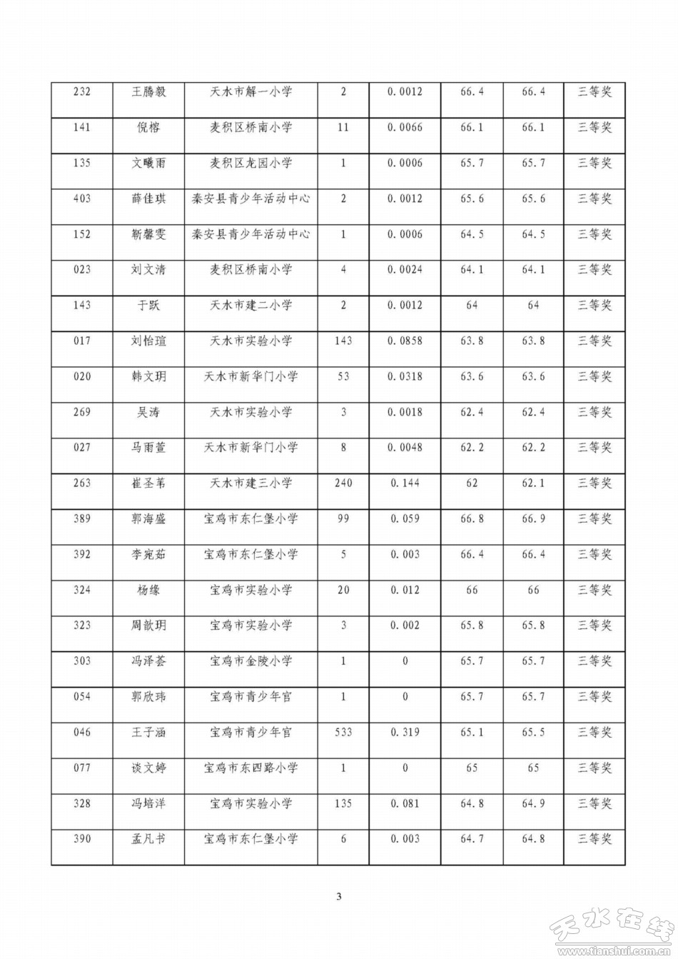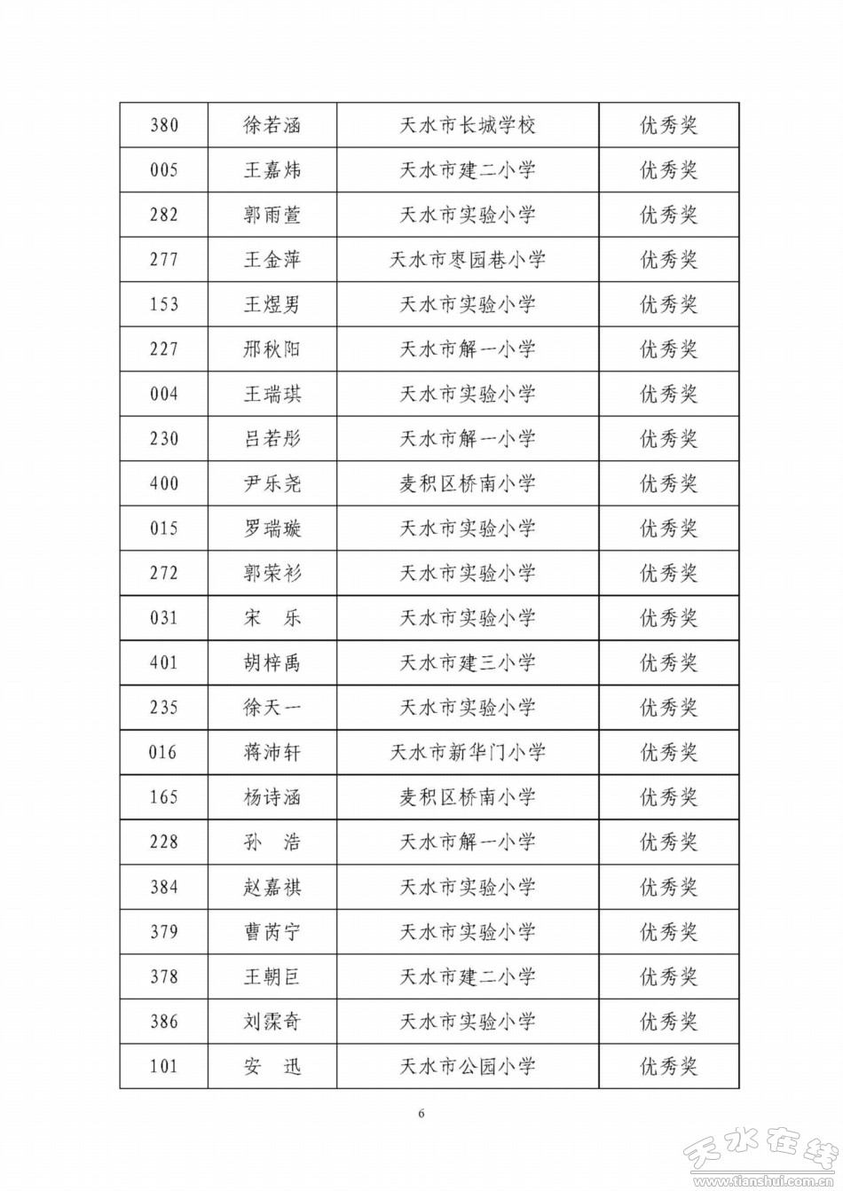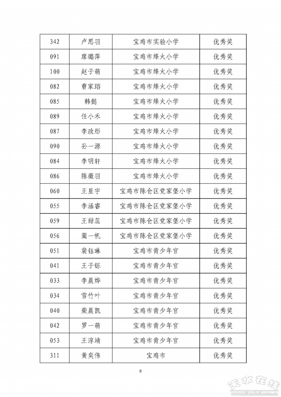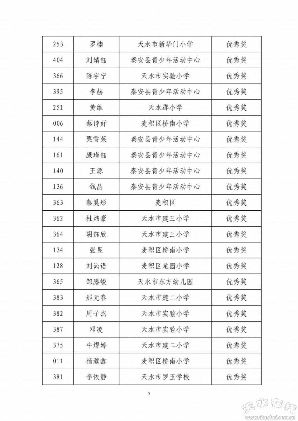 天水寶雞少年兒童書畫作品網(wǎng)絡(luò)聯(lián)展獲獎名單
