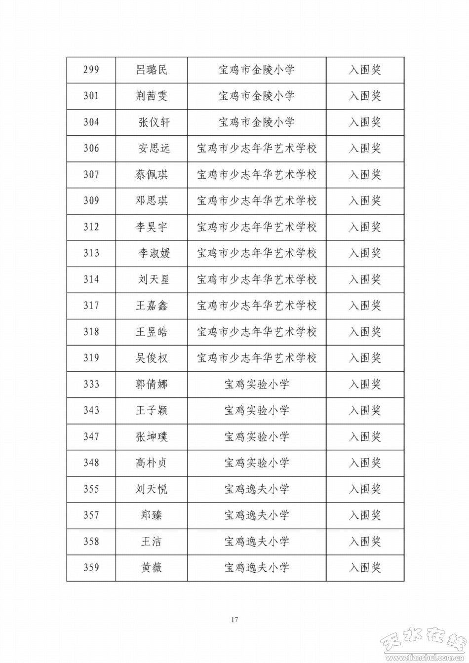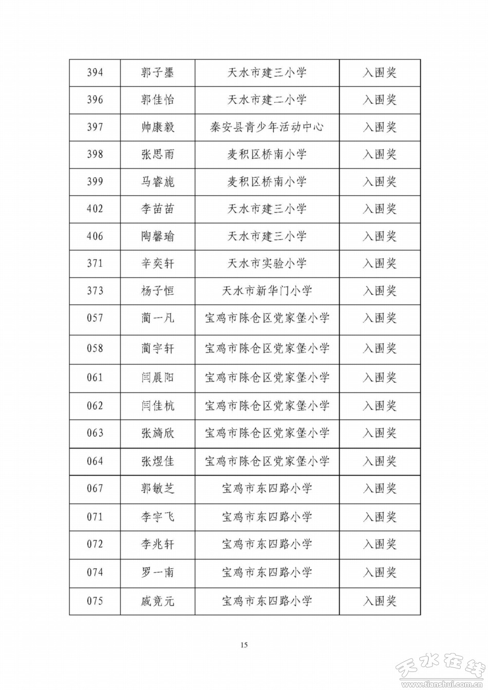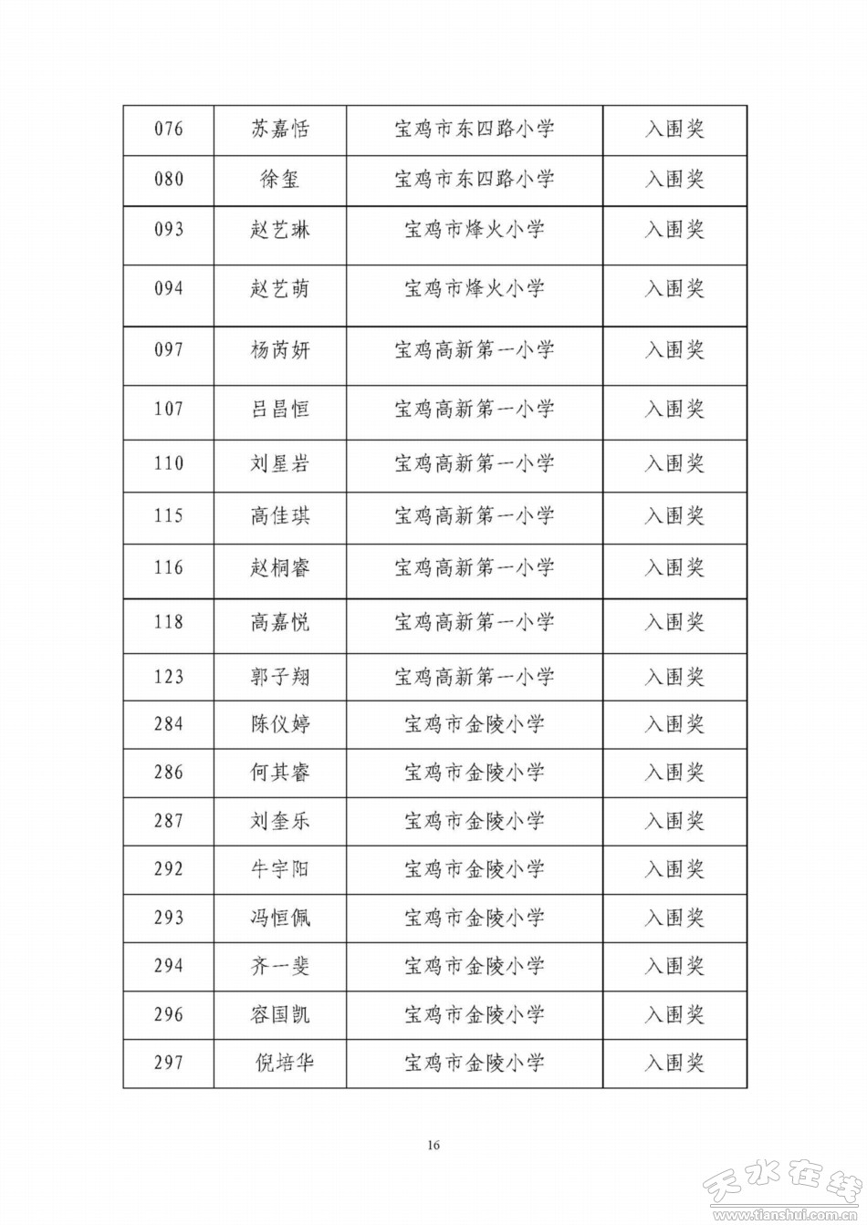 天水寶雞少年兒童書畫作品網(wǎng)絡(luò)聯(lián)展獲獎(jiǎng)名單