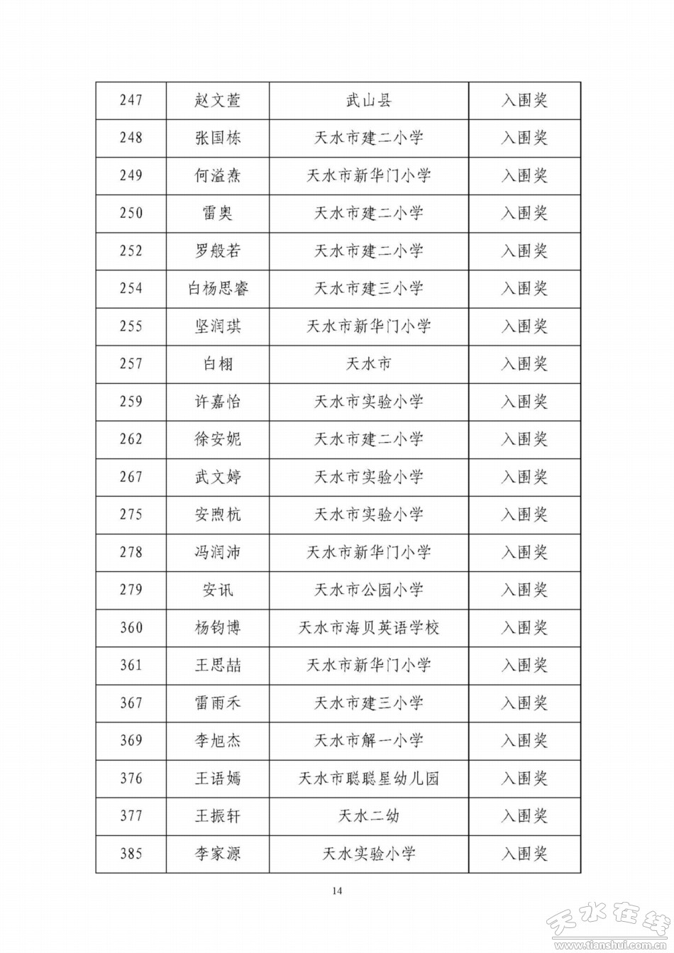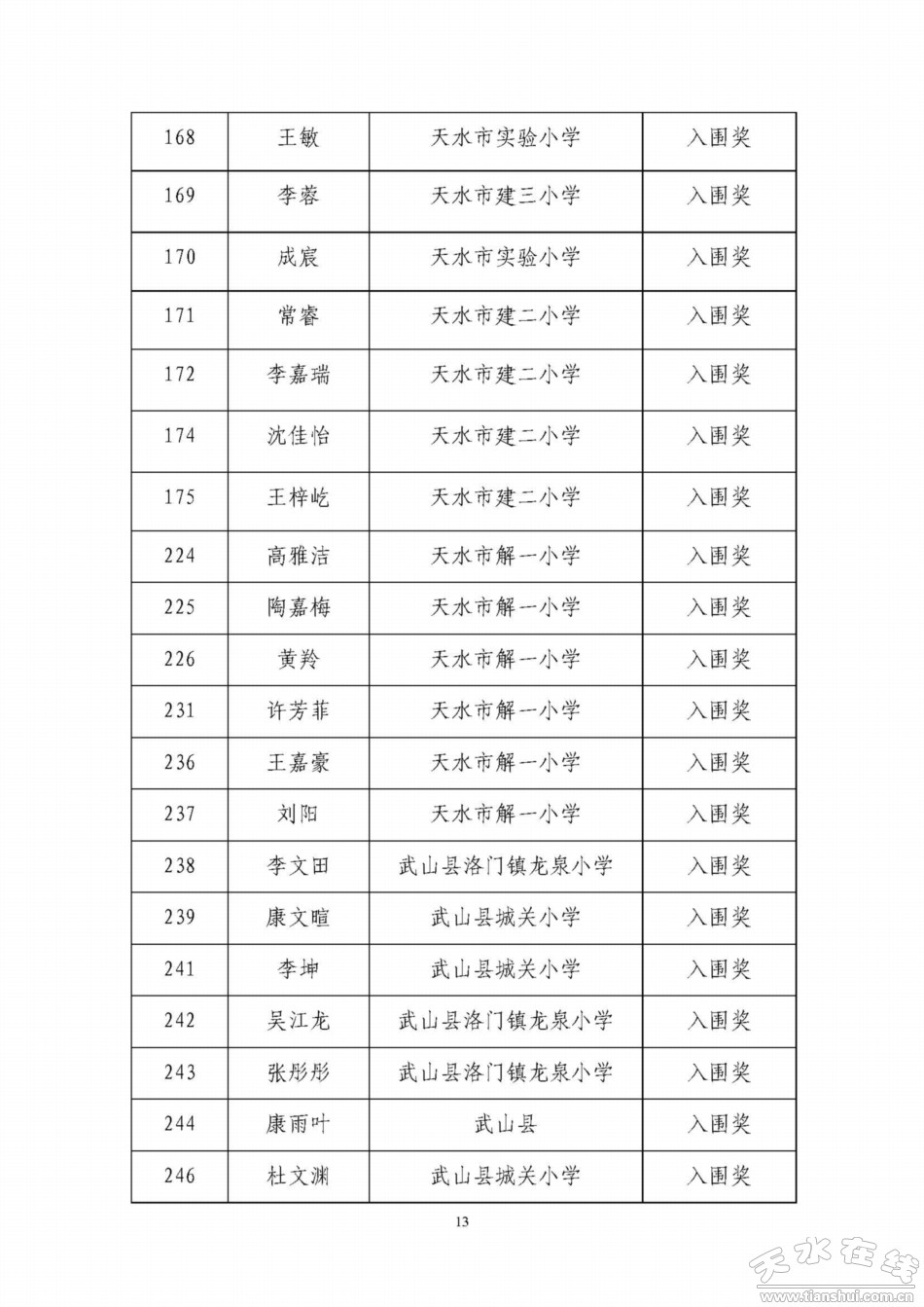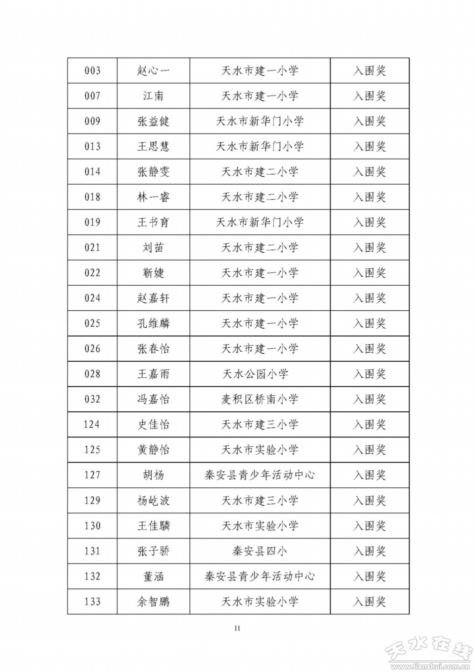 天水寶雞少年兒童書畫作品網(wǎng)絡(luò)聯(lián)展獲獎(jiǎng)名單