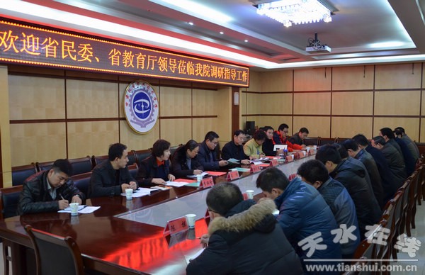 12月12日下午,由省民委副巡視員安生明任組長、省民委社會事業(yè)處處長褚玉芳、副處長楊成福、省教育廳民族教育處干部張健、資助中心干部王愷等為成員的聯(lián)合調(diào)研組一行6人,深入甘肅機電職業(yè)技術(shù)學院就全省民族地區(qū)接受全日制普通高等教育及高職(?疲┙逃毨W生家庭經(jīng)濟狀況進行專題調(diào)研。天水市民委副主任李煥珍、天水市教育局資助中心主任何安營陪同調(diào)研。學院黨委書記李宗義,院長張炯,副院長毛文輝、霍五堂及黨委辦公室、學工部、團委等部門負責人及各系部分管學生副主任參加調(diào)研匯報。