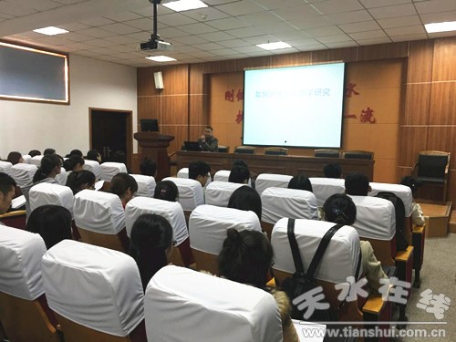 11月4日下午,天水師范學(xué)院研究生“知行”講壇(第八講)在天水市一中舉辦。市一中教研處主任趙旺龍應(yīng)邀作了題為“如何開(kāi)展教育教學(xué)研究”的報(bào)告,天水師范學(xué)院研究生處副處長(zhǎng)周俠帶領(lǐng)2016級(jí)研究生、部分導(dǎo)師及研究生秘書(shū)共150余人參加了報(bào)告會(huì)。