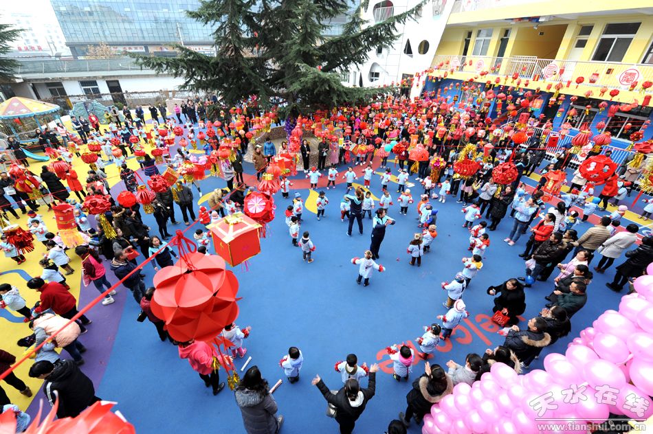 500張臉龐笑逐顏開童心飛揚,500個燈籠迎風(fēng)搖曳喜迎新年。12月23日,天水市秦州區(qū)春風(fēng)幼兒園內(nèi),張燈結(jié)彩,歡聲雷動,春風(fēng)幼兒園 “童心飛揚 喜迎新年”親子活動隆重舉行,500多名幼兒和家長在快樂的游戲中感受親情,喜迎新年。