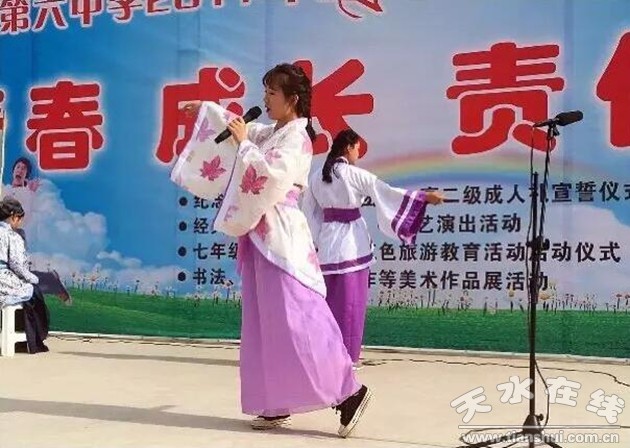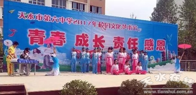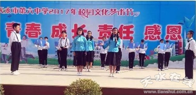 5月11日上午天水市第六中學(xué)開展了"青春、成長、責(zé)任、感恩"經(jīng)典詩文誦讀活動。校長李美喜、黨支部書記武榮國、副校長汪濤、溫瀟順、崔勝潮,全校師生共2000多人參加了活動,活動由政教處主任汪伍荃主持。