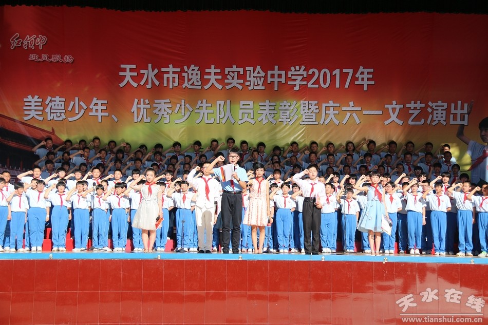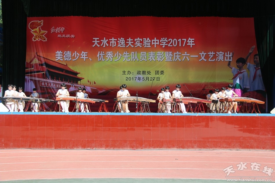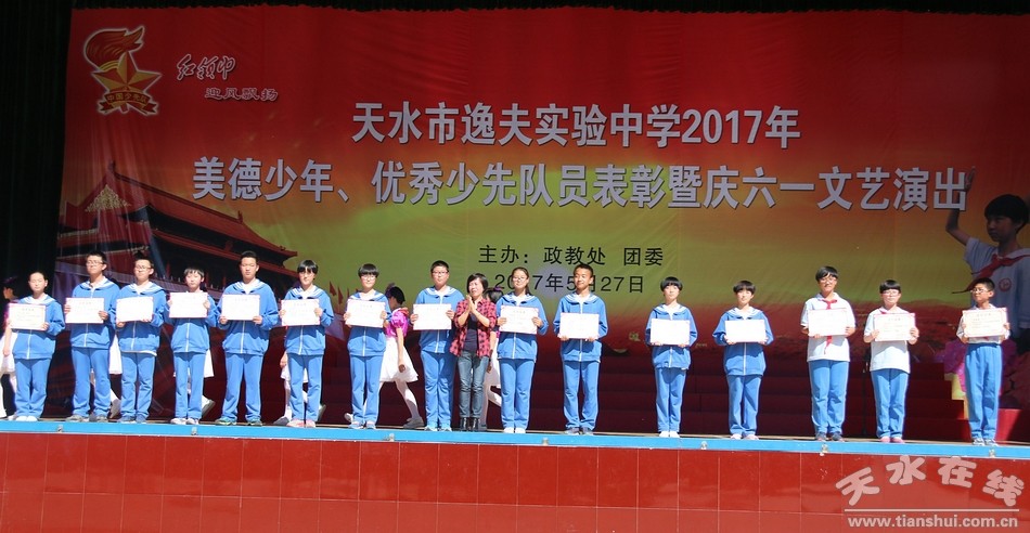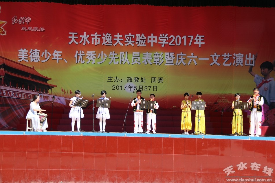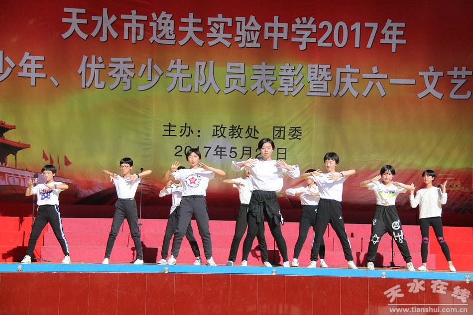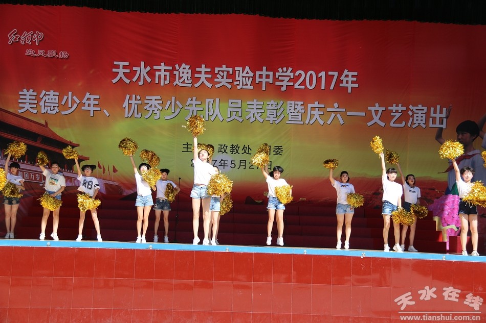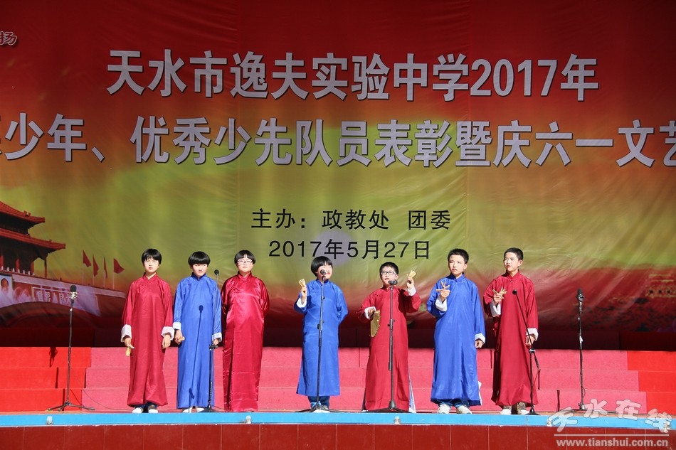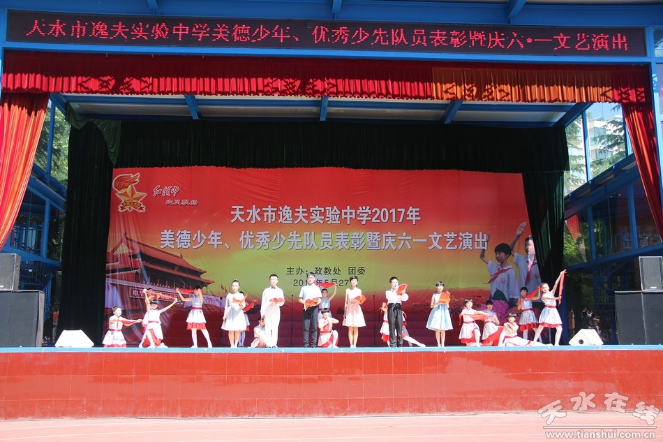 5月27日下午3時(shí)許,天水市逸夫?qū)嶒?yàn)中學(xué)操場(chǎng)內(nèi)人頭攢動(dòng),掌聲陣陣。2017年度校級(jí)“美德少年”、優(yōu)秀少先隊(duì)員表彰獎(jiǎng)勵(lì)暨慶祝國(guó)際六一兒童節(jié)文藝演出活動(dòng)正在有序進(jìn)行。來(lái)自七年級(jí)的九百多名同學(xué)學(xué)習(xí)先進(jìn),載歌載舞,與學(xué)校領(lǐng)導(dǎo)和老師共慶國(guó)際兒童節(jié)。