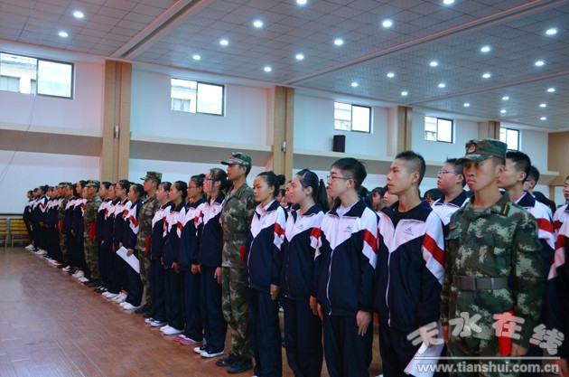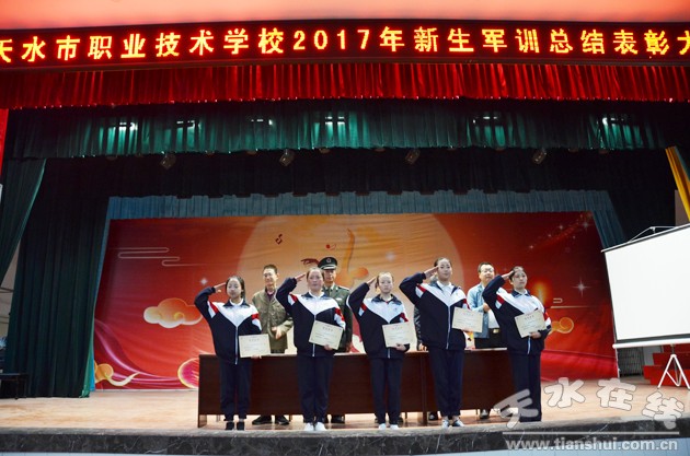 在激昂的軍歌聲中,天水市職業(yè)技術(shù)學(xué)校2017年新生軍訓(xùn)總結(jié)表彰大會圓滿結(jié)束。