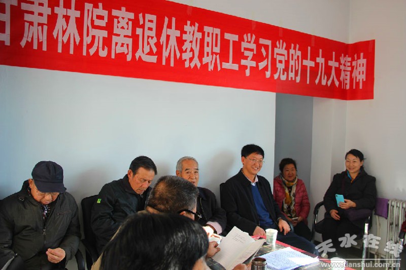 11月15日,甘肅林職學(xué)院工會(huì)在家屬院老干部活動(dòng)室召開(kāi)離退休人員學(xué)習(xí)黨的十九大精神專題學(xué)習(xí)會(huì)。副院長(zhǎng)冉福祥出席,全體離退休人員參加。會(huì)議由工會(huì)主席王彩霞主持。