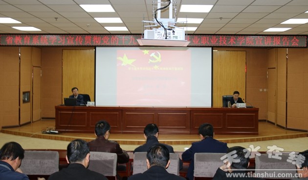 按照省教育廳統(tǒng)一部署,12月7日,省教育廳(高校工委)系統(tǒng)學(xué)習(xí)宣傳貫徹黨的十九大精神宣講團(tuán)成員、省委黨校教授康民赴甘肅林業(yè)職業(yè)技術(shù)學(xué)院作十九大精神學(xué)習(xí)宣講。該院全體中層以上干部、部分師生黨員代表近200人聆聽了報(bào)告。黨委書記高云峰主持宣講會。