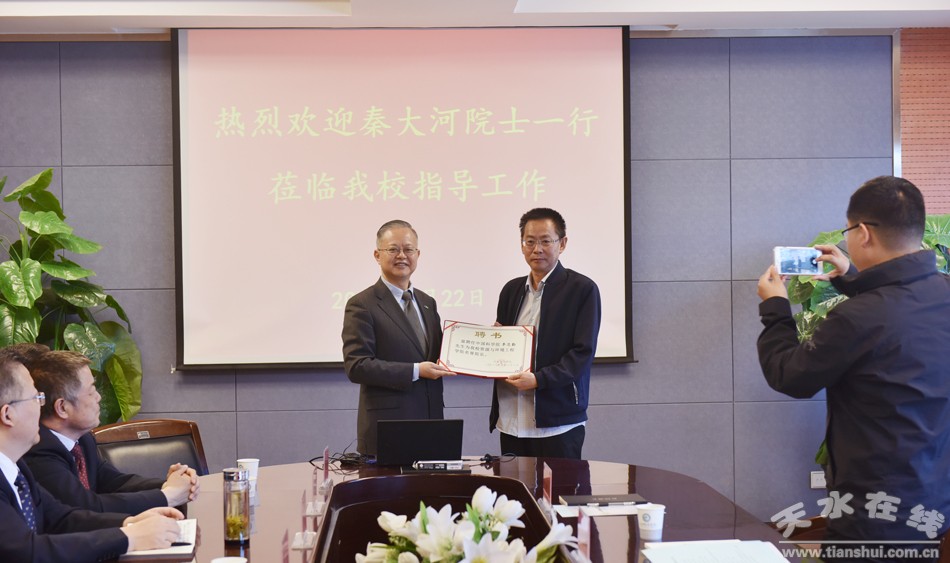 天水師范學(xué)院校長蔡文浩對秦院士一行的到來表示熱烈歡迎,對秦院士受聘為我校名譽(yù)教授表示衷心感謝。蔡文浩向秦院士一行介紹了學(xué)校學(xué)科建設(shè)、科學(xué)研究、人才培養(yǎng)和服務(wù)地方經(jīng)濟(jì)社會情況。蔡文浩表示,秦大河院士受聘為學(xué)校名譽(yù)教授,將進(jìn)一步提升學(xué)校的辦學(xué)聲譽(yù)和辦學(xué)水平,提升學(xué)校的教育質(zhì)量,同時將會為學(xué)校師生樹立榜樣,激勵廣大教師積極投身教育事業(yè)。