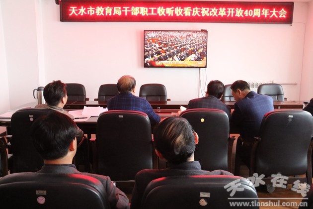 12月18日上午,天水市教育局組織機(jī)關(guān)干部職工收看慶祝改革開(kāi)放40周年大會(huì),聆聽(tīng)習(xí)近平總書(shū)記發(fā)表的重要講話(huà),盛贊改革開(kāi)放的巨大成就,信心百倍憧憬美好明天。